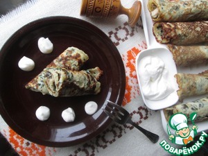 Отличные сытные блины со шпинатом и ярко выраженным пивным вкусом. Начинка из двух видов сыра и шампиньонов очень гармонично дополняет общую картину. Прошу!