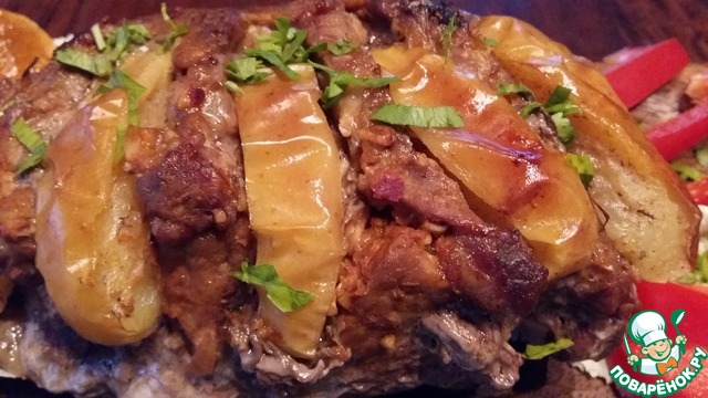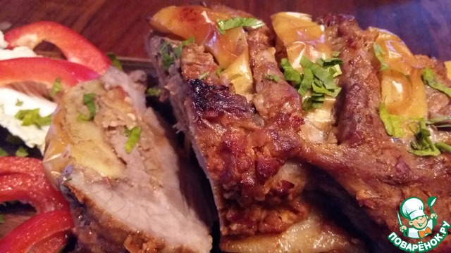 Все готово! Мясо получилось очень сочным, нежным и ароматным. Маринад и оригинальная начинка сделали его действительно достойным праздника!