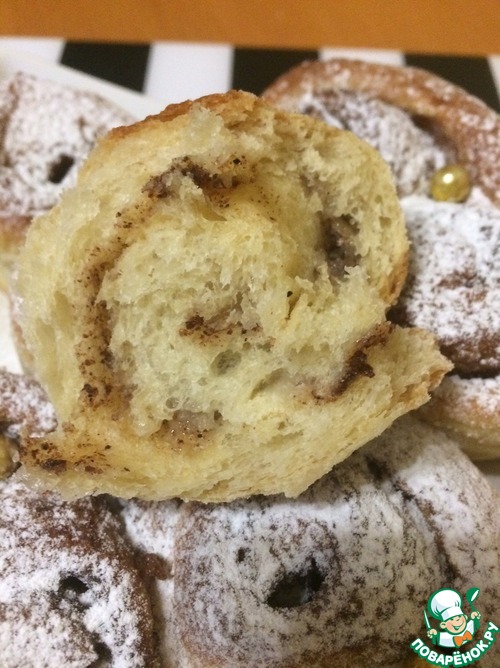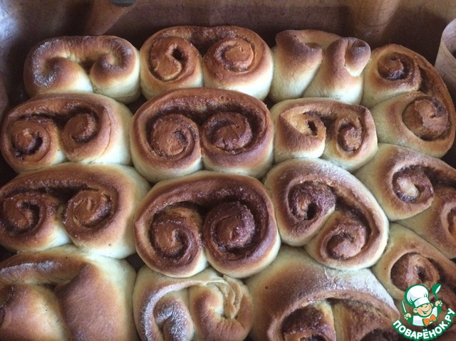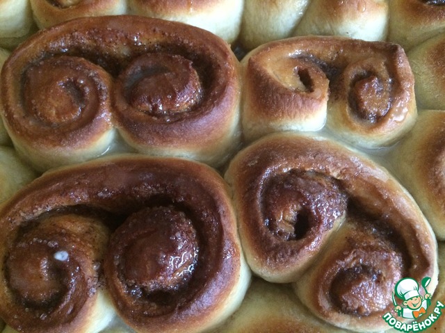 Необычайно нежные, вкусные плюшки с корично-сахарной начинкой, пропитанные молочной глазурью.