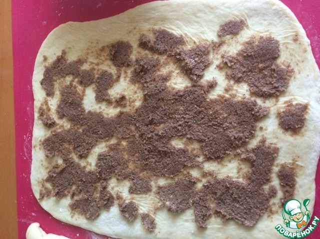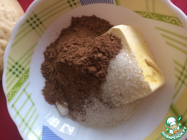 Приготовить начинку. Масло перетереть с сахаром и корицей.