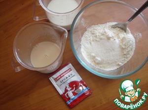 Делаем тесто. Соединяем сухие ингредиенты: муку, сахар, соль. В тёплой воде разводим дрожжи. Молоко немного подогреваем.