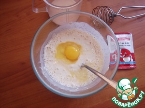 Чашка для теста должна быть высокая. В муку наливаем молоко и разбиваем яйцо. Всё соединяем.