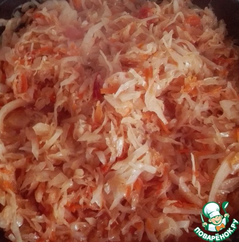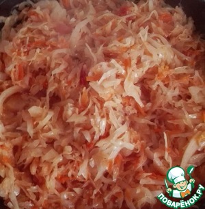 Готовим начинку. Тушим капусту (я смешала квашеную с свежей, но это делать не обязательно)
