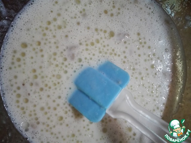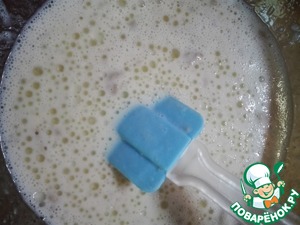 Добавляем теплую смесь молока с водой. И ставим опару подойти.