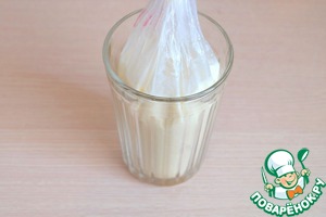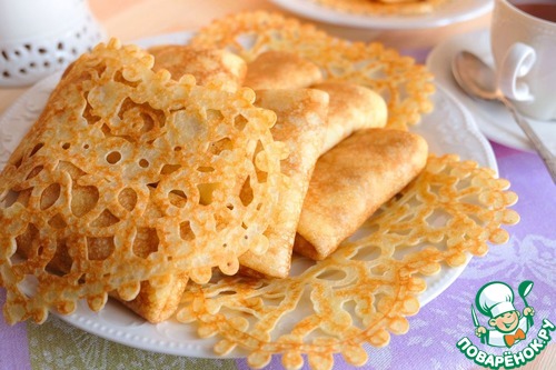 По желанию можно приготовить ажурные салфеточки для блинов, если вы готовите праздничный вариант. Для этого: несколько ложек блинного теста выложить в небольшую миску, добавить немного муки, смесь еще раз хорошо размешать до однородного состояния. Поместить смесь в кондитерский мешок, кончик мешка срезать примерно 1 мм.