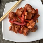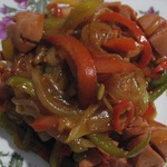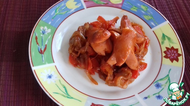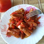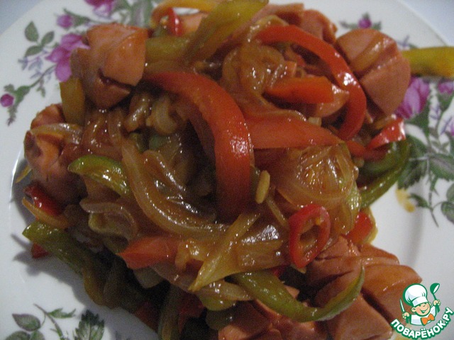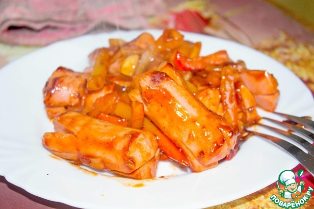 Всё хорошенько перемешиваем минуты 2 и снимаем с огня. Сосиски по-корейски готовы.