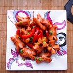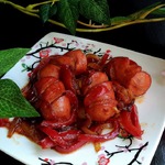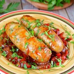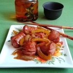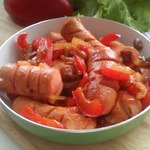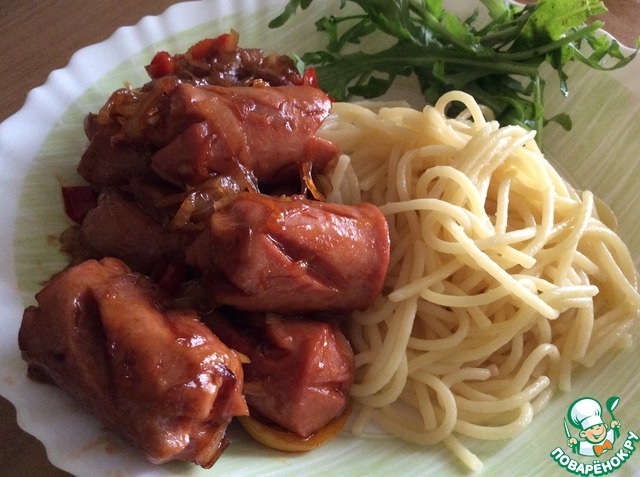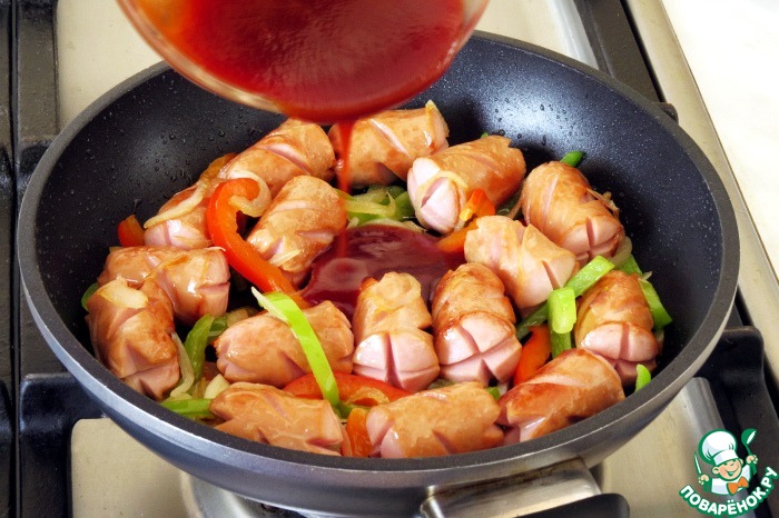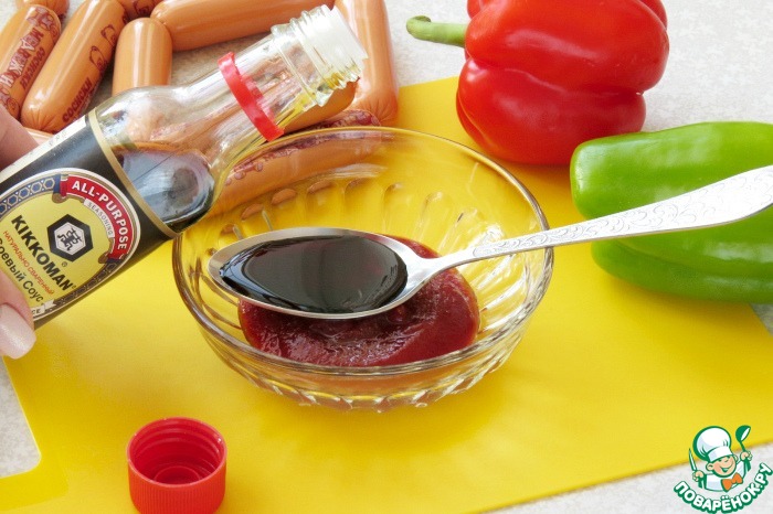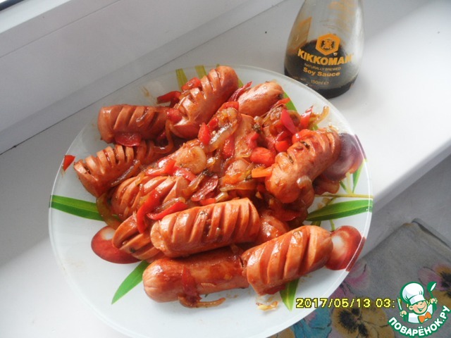 Очень жаль, что в те далёкие 90-е не было такого шикарного соуса "Kikkoman" (или может это мы о нём не знали), который из самого простого блюда делает потрясное!!! И просто обычные сосиски выступают совершенно в другом свете, цвете и вкусе!
