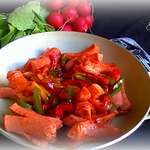 - Перец болгарский (по половинке разного цвета) — 1 шт
