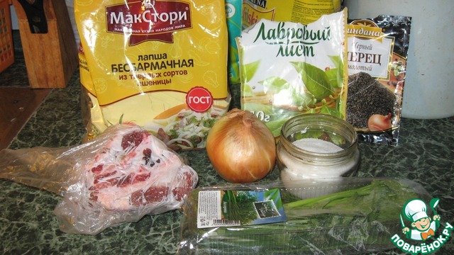 для приготовления этого блюда в прошлой жизни мы брали баранину и немного конины.Мяса должно быть много.К лапше подавался бульон в пиале,для запивания.