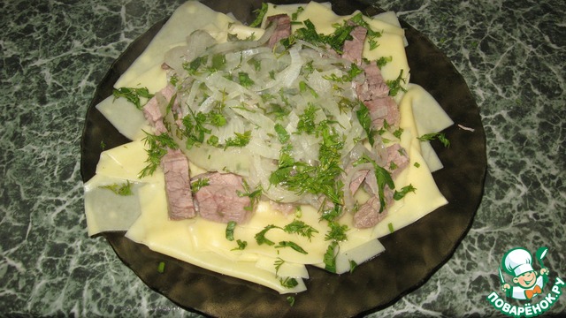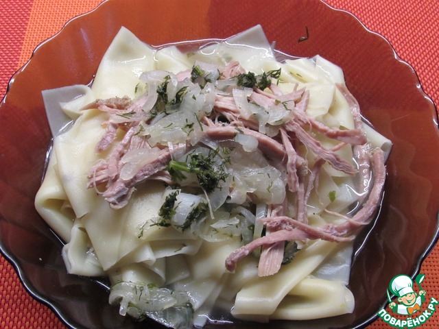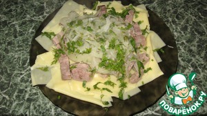 Никогда не готовила данное блюдо, вот сегодня решила попробовать по рецепту на упаковке лапши для Бесбармака. Получилось очень вкусно!
