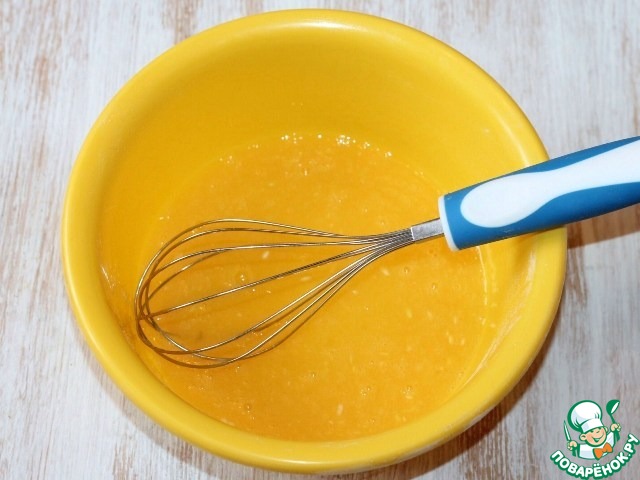 3. В большой миске взбейте яйцо с желтками в пышную пену. Растопите и немного остудите масло.