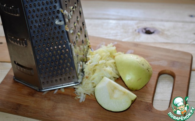 У яблок удалить сердцевину, натереть их на крупной терке, сбрызнуть лимонным соком. (1 ч. л.)