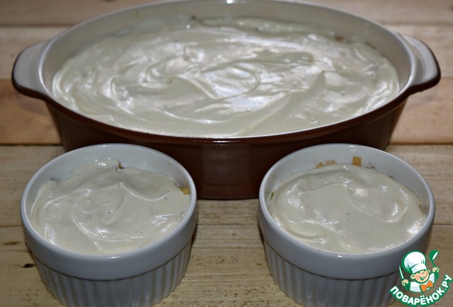 Все готово! Из данного количества продуктов получается одна форма емкостью 1 л и две порционные формочки по 150 мл.