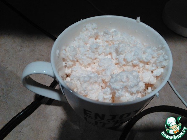 Теперь добавить творог. Ещё слегка взбить, чтобы он не был комками. У меня домашний творог. Я как-то один раз плохо отжала, и добавила. Все получилось, но вы так не делайте.