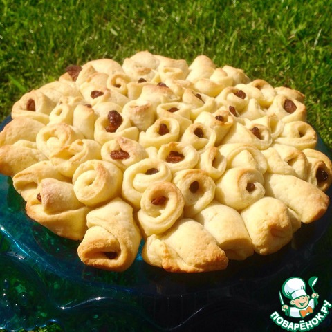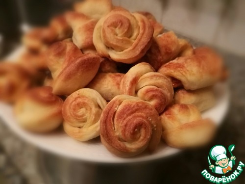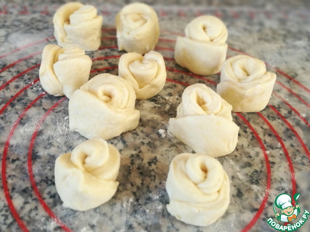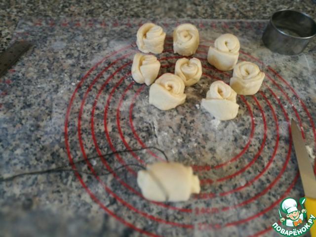 Все было отлично до тех пор, пока мне не надоел этот процесс - бери и закручивай - я посмотрела на свои рогалики... подумала... и сделала розочки. Делать их было в миллион раз проще и быстрее.
