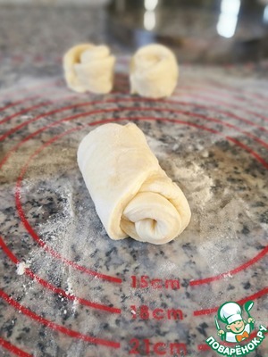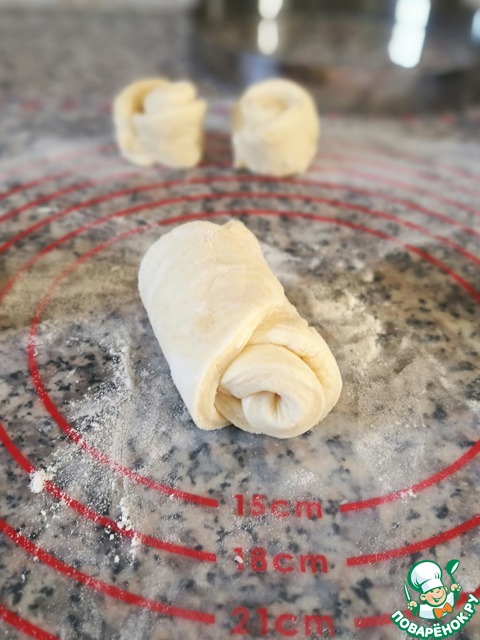 Когда я стала я раскатывать тесто на рогалики, это было несколько затруднительно, и я сразу стала искать альтернативный вариант.