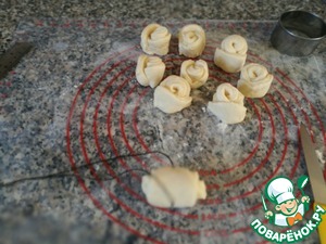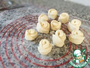 Нужно только закрепить последний лепесток, чтобы он не разворачивался во время выпечки - просто легко его прижать в этом месте. -