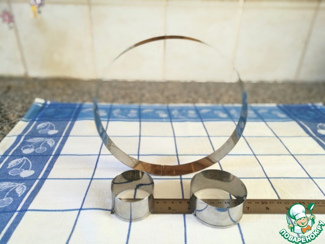 После этого все просто - раскатали как раскаталось, можно в это время песни петь, ну, в смысле, что свободен ("я сво-бо-ден словно птица в небесах" и т. д.) Наложили кольцо на тесто, нажали - получился круг идеальной формы.