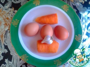 Делаем массу из яиц, моркови, сыра, чеснока, майонеза, смеси черного и красного перцев и соли по вкусу.