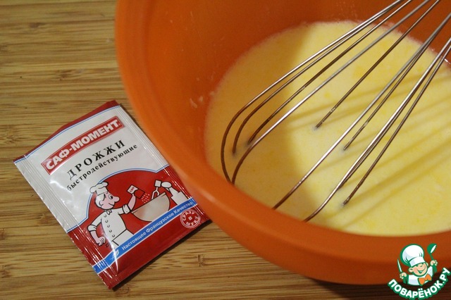 В теплом молоке растворить сахар, сливочное масло, соль и дрожжи.