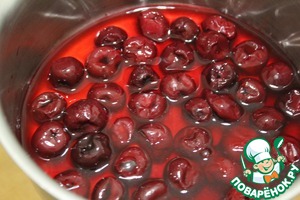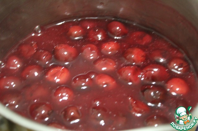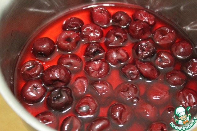 В вишню с соком добавить сахар - я добавила сироп из яблочного варения.