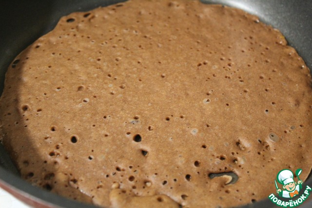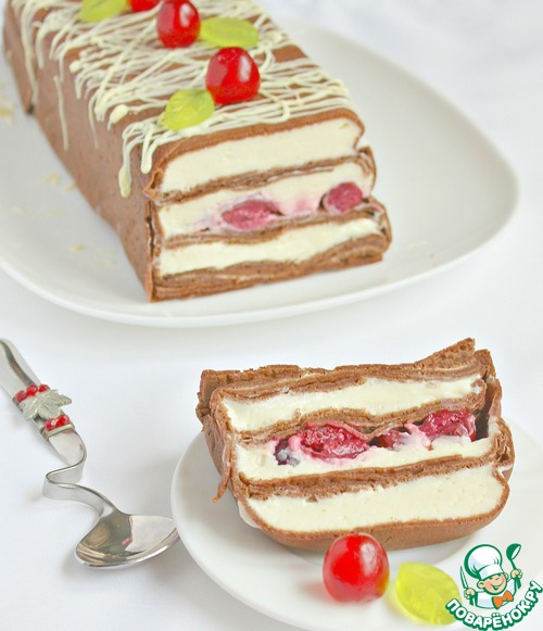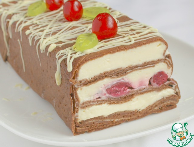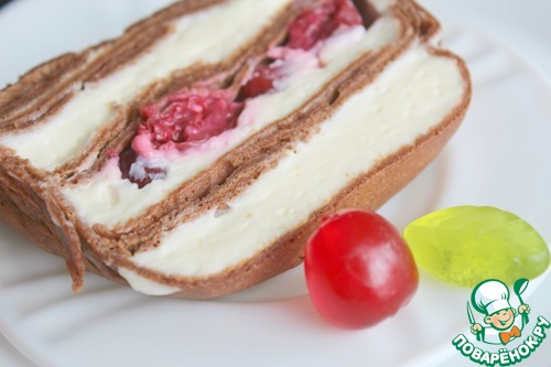Рецепт «Шоколадный блинный торт "Вишневый переполох"»: