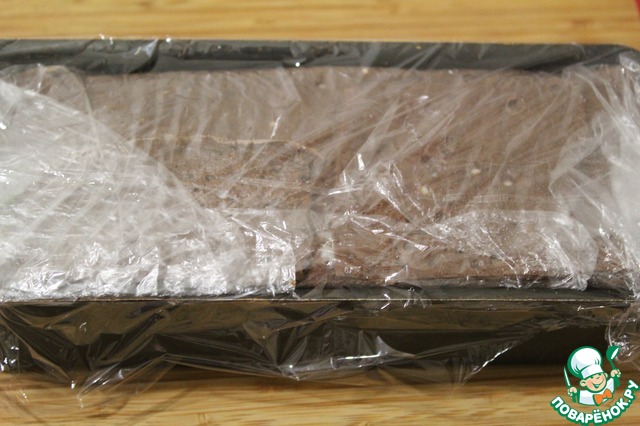 Верхний слой - концы блинов завернуть на начинку накрыть пленкой и убрать в холодильник на ночь.