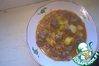 Нарезаем мясо (здесь это говядина, но можно взять и свинину). Нарезать лучше мелкими кусочками, оно так быстрее пропитается и приготовится.