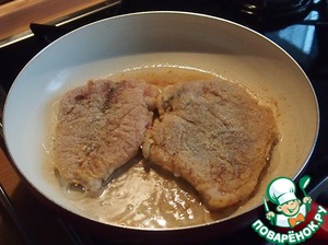 Обжаривать до румяной корочки с двух сторон, периодически переворачивая мясо. В случае надобности добавить масло. Общее время жарки - 6 -8 минут с каждой стороны. Когда корочка уже будет достаточно прожаренная, но вы сомневаетесь в готовности мяса, убавьте огонь и еще минутку прожарьте мясо с обеих сторон. Не оставляйте ризки без присмотра, панировка может сгореть, если мясо не переворачивать.
