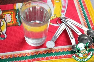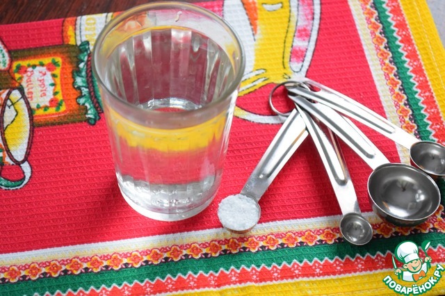 Пока подходит тесто, в 200-250 мл теплой воды растворяем соль.