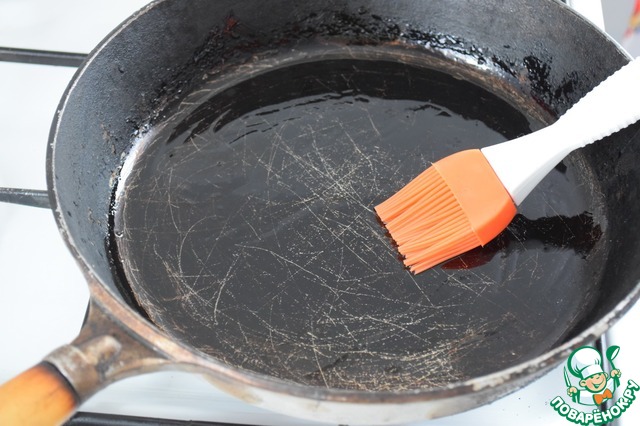 Сковороду смазываем растительным маслом и раскаляем до дымка. Больше сковороду смазывать не надо!!!