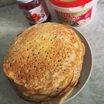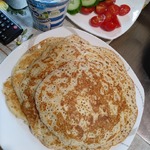 И еще несколько моих "хитростей": для блинов я использую толстостенную чугунную сковороду (хотя есть у меня и 2 блинные, но не люблю я их... не те блины на них получаются), в этой сковороде я жарю только!!! блины и ничего кроме блинов! Тесто (именно для этих блинов) заводить только ручками, без всяких миксеров! После того, как приступили к выпеканию блинов, тесто больше не перемешивать и половник в емкость с тестом не бросать, пусть лежит рядом с емкостью, на тарелочке!