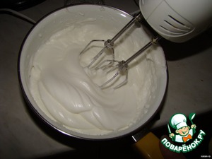 Взбейте белки в снег, добавив щепотку соли, после 70 гр. сахара. -