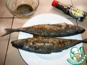 Я взяла 2 тушки разновидности тунца, весом по 400г. Рыбу выпотрошить, промыть, обсушить, сделать несколько неглубоких надрезов. Рыбу обязательно нужно подкислить, сбрызнув лимонным соком или уксусом. Немного посолить. Обильно смазать приготовленным маринадом внутри и снаружи. Оставить мариноваться на 1 час. Рыбу запекать в смазанной маслом форме или на силиконовом коврике при температуре 200 градусов примерно 30 минут, ориентируясь на размеры рыбы и возможности духовки, до легкого золотистого цвета с каждой стороны. Перевернув, рыбу снова смазать остатками маринада, что предотвратит пересыхание.