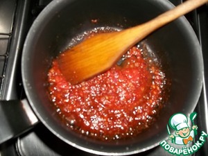 В небольшом сотейнике припустить с соевым соусом лук, чеснок и помидор с имбирем. Обычно обжаривают все на масле, но я принципиально не использую масло в приготовлении этого соуса, так как орехи содержат достаточно масла. Жарить пару минут.