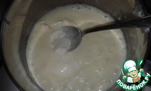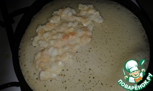 Затем влить молоко, помешивая довести до кипения. Добавить сыр и прогреть до его полного растворения
