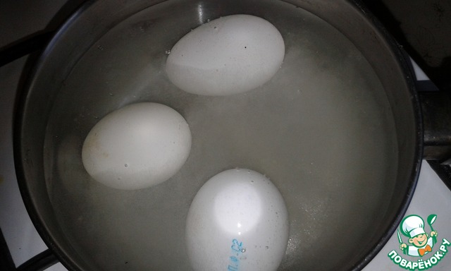 - Яйцо куриное (1 в тесто, 3 в начинку) — 4 шт