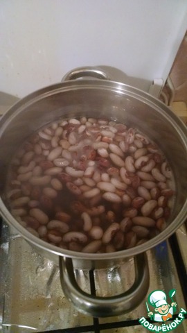 - Вода (с учетом воды, в которой варилась фасоль (около литра) — 2,5 л
