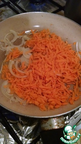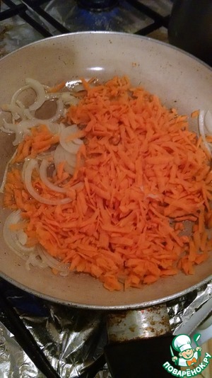 Делаем зажарку из лука и моркови. Я очень люблю жареный привкус в супе, но это не обязательно.