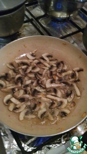 Обжариваем грибы. После просмотра фильма "Джули и Джулия" грибы я жарю только небольшими порциями в один слой и на большом огне. Так они получаются золотистыми. Главное - не пережарить.