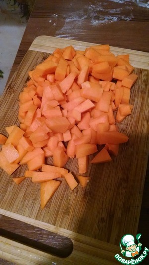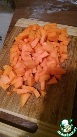 Режем тыкву и добавляем в суп. К этому моменту картофель и фасоль уже хорошо сварились.