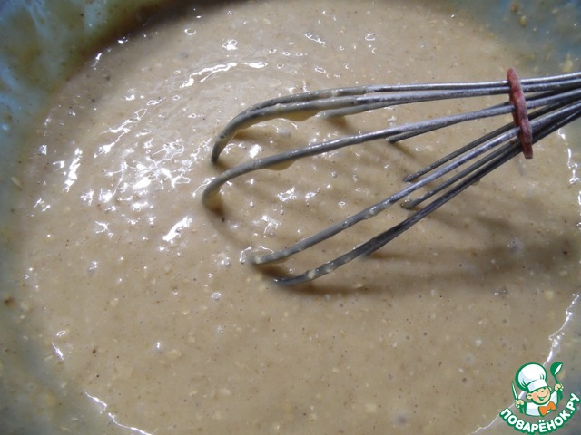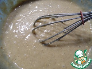 • 2 жидкие смеси смешать с сухой, замесить негустое тесто.