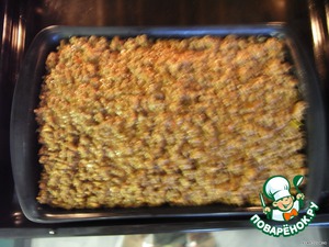 Обильно посыпать сверху сыром или просто разложить сыр на поверхности. Снова в духовку дать сыру расплавиться и немного зарумяниться.