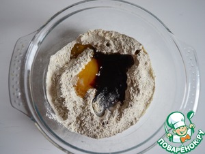 В мучную смесь добавить соль, мед, яблочный уксус, солод.