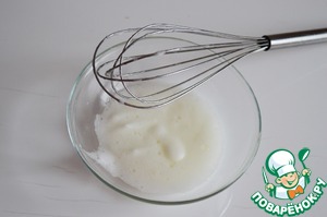 Белок взбить венчиком и добавить в тесто, бережно вмешивая его.