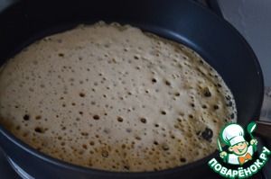 Вот такие блинчатые кружева образуются на разогретой сковороде. Для выпекания лучше использовать тяжелую, желательно, чугунную сковороду с толстым днищем.