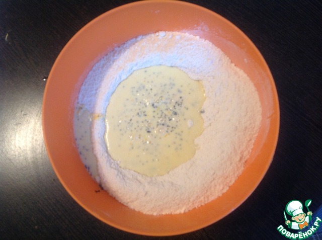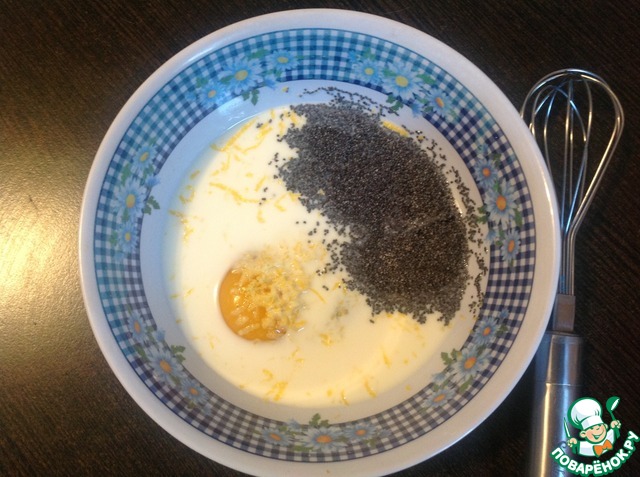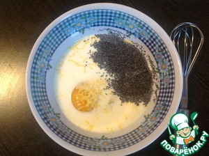 Отдельно соединить вместе сливки, яйцо, лимонную цедру и мак.
