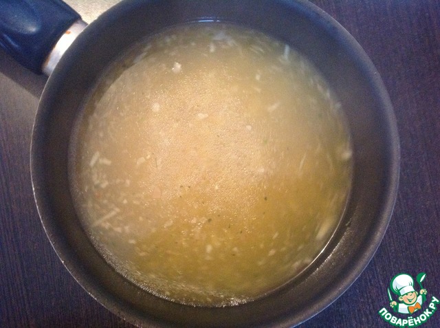 Как только бульон закипит, огонь убавить до среднего, влить разведённый крахмал. Перемешать и готовить 5 минут.