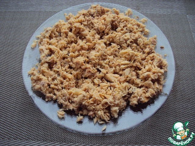 Предлагаю еще один несложный салат для любителей рыбных консервов.