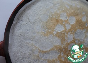 На сухую сковороду вылить немного теста, распределить по всей поверхности. Обжарить блины с обеих сторон до золотистого цвета.